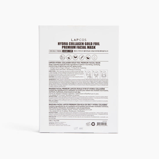 LOOKING TO TRANSFORM YOUR SKIN AND ROUTINE WITHOUT THE SPLURGE? LIFT, FIRM AND BRIGHTEN THE LOOK OF SKIN WITH A TOUCH OF LUXURY ALONG THE WAY WITH OUR NEWLY REFORMULATED 24K GOLD HYDRA COLLAGEN FACE MASK. THE INNOVATIVE TWO-PIECE MASK PROVIDES FULL FACE COVERAGE FOR AN ENTIRELY REVITALIZED AND ILLUMINATED APPEARANCE. PACKED WITH ANTIOXIDANT-DENSE, SKIN-BRIGHTENING HEROES, THE SECRET BEHIND THE FORMULA IS 24K GOLD, CELEBRATED FOR CENTURIES FOR ITS ANTI-AGING, SKIN-PLUMPING EFFICACIES. PERFECT GIFT FOR VALENTINE'S DAY OR GALENTINE'S MADE WITH: - PURE GOLD - HYDROLYZED (MARINE) COLLAGEN - ACETYL HEXAPEPTIDE-8 BENEFITS: - REJUVENATES BY CALMING REDNESS AND REDUCING INFLAMMATION - FIRMS THE SKIN, REDUCING WRINKLES AND FINE LINES - FIGHTS FREE RADICALS AND PROTECTS AGAINST ENVIRONMENTAL AGGRESSORS