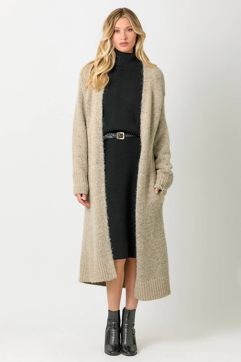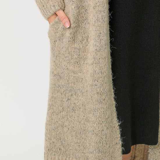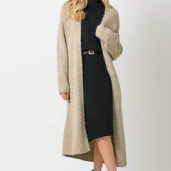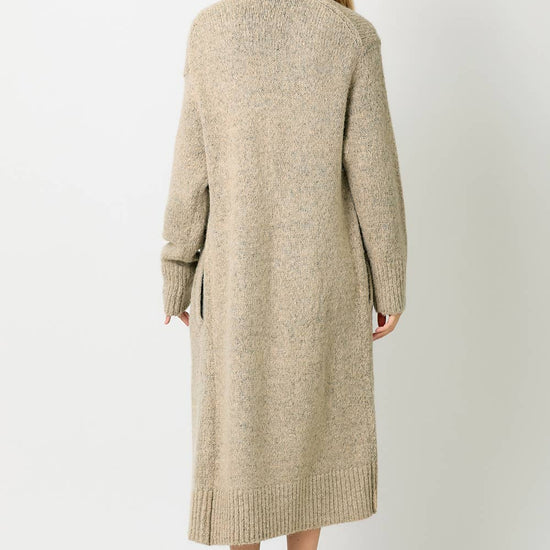 DOLMAN LONG SWEATER CARDIGAN MIDI LENGTH SIDE POCKETS DOLMAN BUBBLE SLEEVES -MODEL IS WEARING TOFFEE WITH 60747 SWEATER, SAND WITH 60880 DRESS -MODEL WEARS: S / MODEL HEIGHT: 5` 9"