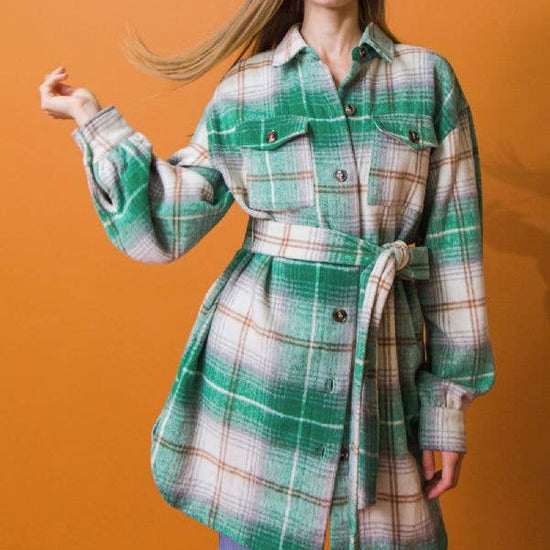 A WOVEN MIDI JACKET FEATURING BUTTON DOWN, FRONT POCKETS AND SELF BELT DETAILS SELF: 100% POLYESTER - MODEL IS 5`8" AND WEARING SIZE SMALL - MEASUREMENTS TAKEN FROM SIZE SMALL - APPROX. LENGTH: 38"