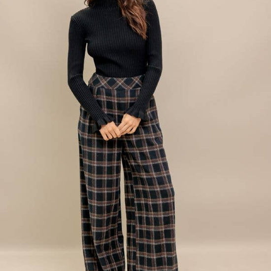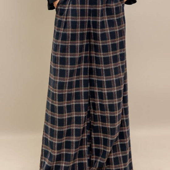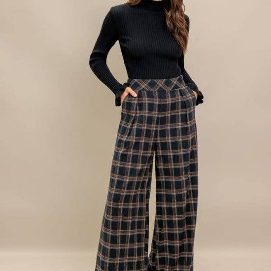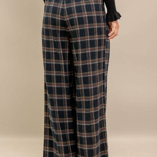 A WOVEN PLAID PANT FEATURING WIDE WAIST BAND, SINGLE FRONT PLEAT, SIDE POCKET AND ZIPPER CLOSURE. MATCHING TOP IT13402 DETAILS: SELF : 100% COTTON SIZE & FIT - MODEL IS 5`8" AND WEARING SIZE SMALL - MEASUREMENTS TAKEN FROM SIZE SMALL - APPROX. LENGTH: 42" INSEAM - 30"