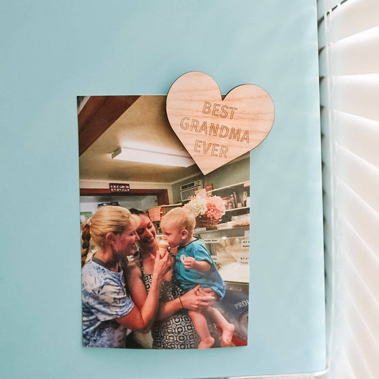 PERFECT FOR GRANDMAS ON MOTHER'S DAY! DIMENSION: EACH MAGNET AVERAGES 1"-1.5" ON ITS LONGEST LENGTH FOR MULTI PACKS, AND 1.8"-2.4" FOR LARGE SINGLE MAGNETS. MATERIAL: LASER-CUT OUT OF 1/4" BIRCH WOOD. OUR WOOD IS LOCALLY SOURCED, SO EACH PIECE WILL HAVE SLIGHT VARIATIONS IN COLOR, GRAIN AND MAY HAVE SMALL KNOTS. PACKAGING: PACKAGED ON 4"X6" CARD IN A CELLOPHANE SLEEVE.