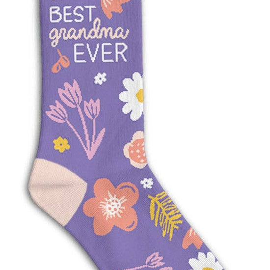 COOKIES, UNSOLICITED ADVICE, AND LOVE THAT BORDERS ON LEGENDARY. GRANDMAS REALLY DO IT ALL. THESE PURPLE SOCKS CELEBRATE THE QUEEN OF THE FAMILY WITH LAVENDER TOES AND HEELS, A SCATTER OF FLORAL DESIGNS IN LAVENDER, ORANGE, WHITE, AND YELLOW, AND TEXT THAT READS LOUD AND PROUD: “BEST GRANDMA EVER.” MADE FROM 70% COTTON, 28% POLYESTER, AND 2% ELASTIC, THEY’RE SOFT, BREATHABLE, AND STURDY ENOUGH FOR EVERYTHING FROM TENDING THE GARDEN TO SPOILING THE GRANDKIDS ROTTEN. ONE SIZE FITS MOST (MEN’S 6–11, WOMEN’S 7.5–12), MAKING THEM A THOUGHTFUL GIFT FOR MOTHER’S DAY, BIRTHDAYS, OR JUST BECAUSE SHE DESERVES A CROWN AND SOME COMFORTABLE SOCKS TO GO WITH IT. WARM AND COLORFUL, THESE SOCKS PROVE WHAT THE WHOLE FAMILY ALREADY KNOWS: GRANDMA’S THE BEST, AND IT’S NOT UP FOR DEBATE.