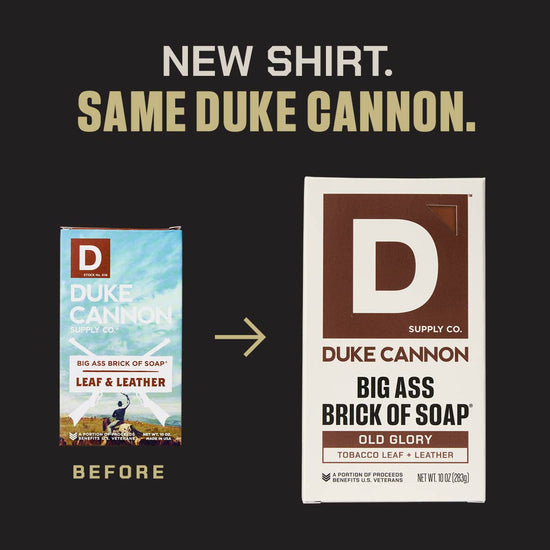 DUKE CANNON WOULD RATHER EXPLORE THE GREAT PLAINS ON HORSEBACK THAN NAVIGATE THE PARKING LOT OF AN OUTLET MALL IN A COMPACT CAR. IT'S IN THE GREAT WIDE OPEN, ABOUT 1000 MILES FROM THE NEAREST FOOD COURT, WHERE A LIGHT BREEZE CARRIES THE SCENT OF OLD LEATHER MIXED WITH FRESH ROLLED TOBACCO LEAVES. TAKE A TRIP BACK IN TIME WHEN A NICE, MASCULINE SCENT DIDN'T INVOLVE CITRUS FRUITS OR FLOWERS, AND EXPERIENCE THIS AMERICAN-MADE SOAP INSPIRED BY LEAF AND LEATHER. ⦁ PRODUCT SPECS SMELLS LIKE TOBACCO LEAF + LEATHER AT 10 OZ., IT'S 3X THE SIZE OF COMMON BAR SOAPS TRIPLE MILLED TO LAST LONGER A PORTION OF PROCEEDS BENEFITS U.S. VETERANS MADE WITH NATURAL OILS