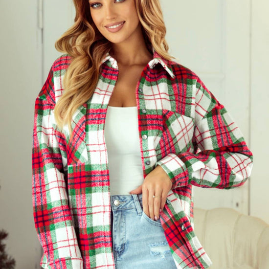 🌟 COLOR: RED, KHAKI, ROSE 🔘 PATTERN: PLAID 📏 SIZE: S-L 👗 MATERIAL: 100%POLYESTER ✅ THIS PLAID SHIRT JACKET IS PERFECT FOR HOLIDAYS AND EVERYDAY STYLE. 🔳 ITS TRENDY LOOK PAIRS WITH A CLASSIC PLAID DESIGN. ❄️ THE CHUNKY FIT KEEPS YOU WARM ON CHILLY DAYS. 🤗 LOOSE AND COMFORTABLE FOR ANY BODY SHAPE. SIZE CHART (INCH) SIZE · US · BUST · HEM S · 4-6 · 40.9 · 44.1 M · 8-10 · 43.3 · 46.5 L · 12-14 · 45.7 · 48.8 SIZE · SHOULDER · SLEEVE · LENGTH S · 22.4 · 20.9 · 28.0 M · 23.6 · 20.9 · 28.7 L · 24.8 · 20.9 · 29.5