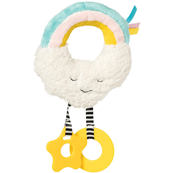 THIS SOFT, SLEEPY CLOUD MAKES A GREAT BABY SHOWER GIFT YOU CAN PAIR WITH OTHER ITEMS . FEATURES TEXTURED TEETHERS, RIBBONS, RATTLE AND SOFT SILKY FABRICS TO HELP SOOTHE LITTLE ONES.