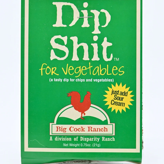 WE HAVE CREATED A REALLY UNIQUE TASTE IN OUR DIP SHIT FOR VEGETABLES (AND CHIPS). MAKES A WELCOME CONTRIBUTION TO A PARTY, OR TO JUST INDULGE YOURSELF IN PRIVATE. WITH ITS SLIGHTLY HOT TASTE, YOU ARE SUBTLETY ENCOURAGED TO SIP YOUR ADULT BEVERAGE OF CHOICE SLIGHTLY FASTER THAN NORMAL. MIX THE ENVELOPE WITH EIGHT OUNCES OF SOUR CREAM AND ALLOW TO CHILL FOR AN HOUR. THEN DIP YOUR FAVORITE VEGGIES OR CHIPS, OR EVEN PUT IT ON A BAKED POTATO. NO LONGER WILL YOU WINCE EVERY TIME YOU HEAR DIP SHIT, THEY’RE NOT TALKING ABOUT YOU.