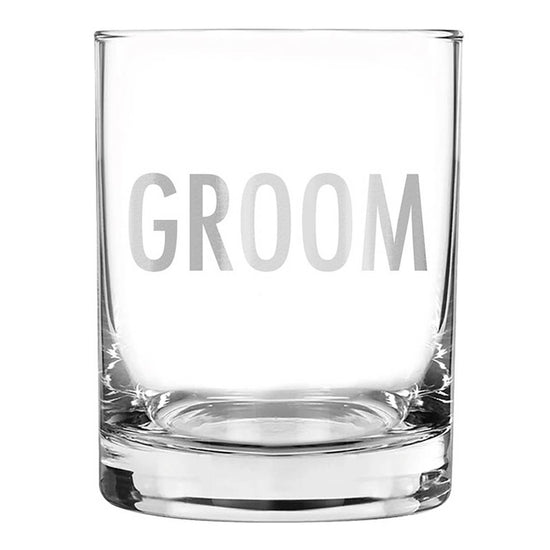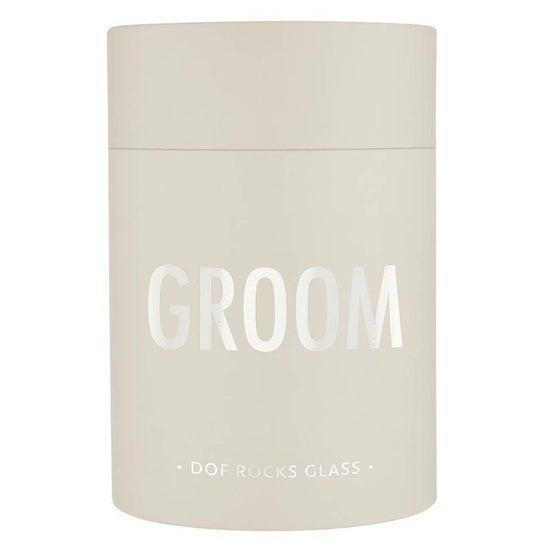 OUR DOUBLE OLD FASHIONED ROCKS GLASSES ARE THE PERFECT GIFT FOR THE 'GROOM' ON HIS SPECIAL DAY. •GLASS READS "GROOM" IN SILVER FOIL •IDEAL FOR WHISKEY, BRANDY OR OTHER SPIRITS SERVED ON THE ROCKS •PACKED IN A DECORATIVE, SILVER FOIL TUBE FOR EASY GIFT-GIVING
