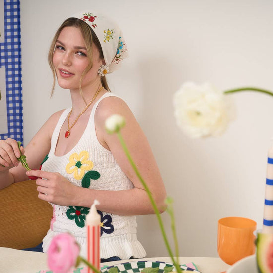 EMBROIDERED FLORAL SCOOP NECK TOP