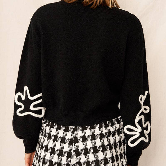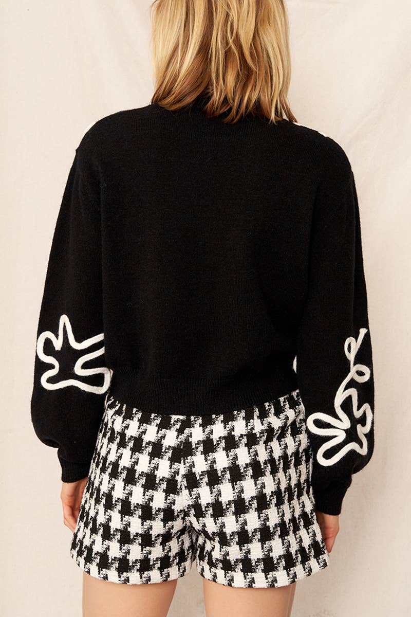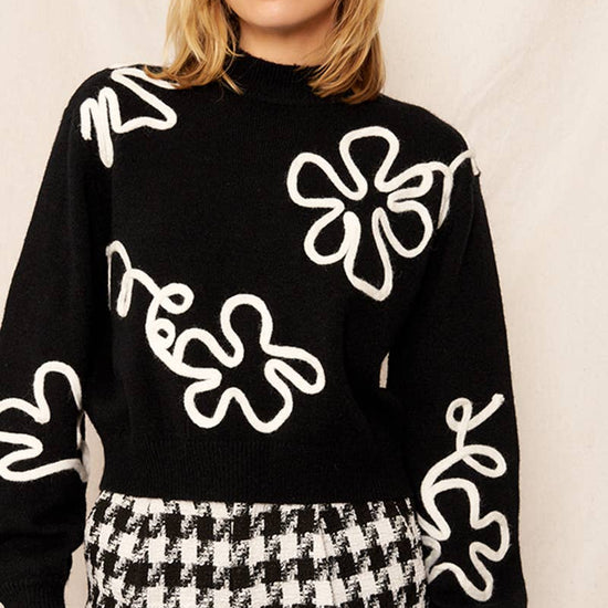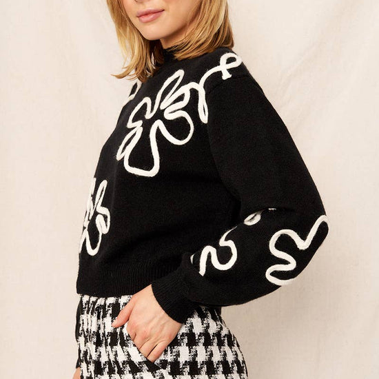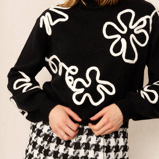FLORAL OUTLINE MOCK NECK SWEATER