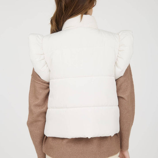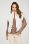 MOCK NECK SLEEVELESS FLUTTER SLEEVE ZIP-UP FRONT BOW DETAIL SOLID LINED OUTERWEAR VEST SHELL:100%POLYESTER LINING:100%POLYESTER FILLING:100%POLYESTER FIBERS