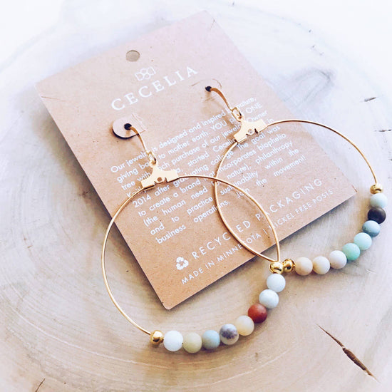 ADD A TOUCH OF BOHO ELEGANCE WITH THESE BEADED GOLD HOOP EARRINGS. FEATURING SLEEK GEMSTONE BEADS STRUNG ON LIGHTWEIGHT GOLD HOOPS, THESE HANDCRAFTED EARRINGS OFFER A MINIMALIST YET BOLD STATEMENT FOR ANY OCCASION. PERFECT FOR EVERYDAY WEAR OR DRESSING UP, THESE VERSATILE AND STYLISH EARRINGS PAIR BEAUTIFULLY WITH LAYERED GOLD NECKLACES, STACKING RINGS, AND GEMSTONE BRACELETS.
