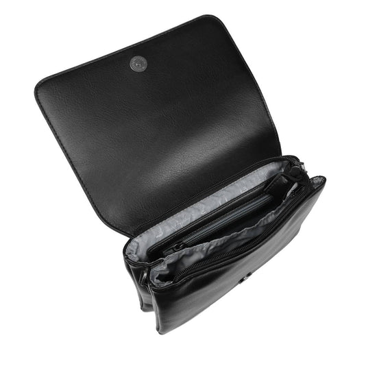 A COMPACT CROSSBODY THAT IS PERFECT FOR ANY OCCASION. WEAR IT AS A SHOULDER BAG, CROSSBODY OR CLUTCH! MADE WITH RECYCLED WATER BOTTLE LINING FOLDOVER FLAP WITH MAGNETIC BUTTON CLOSURE HIDDEN TOP ZIP CLOSURE TWO INTERIOR SECTIONS TWO INTERIOR SLIP POCKETS INTERIOR ZIP POCKET EXTERIOR BACK ZIP POCKET 2 DETACHABLE, ADJUSTABLE CROSSBODY STRAPS (1 VEGAN LEATHER, 1 WOVEN) DIMENSIONS: L 8.5” X H 6.5” X D 1.5” MAX. CROSSBODY DROP HANDLE: 26'.
