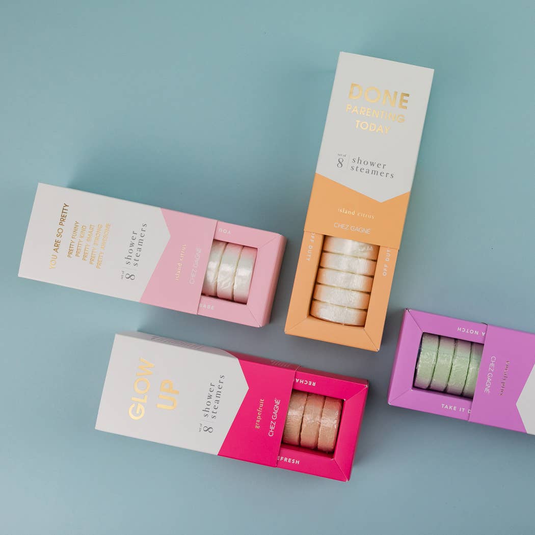 THE GLOW UP GRAPEFRUIT SHOWER STEAMERS ARE YOUR SHORTCUT FROM BLAH TO BANGIN’. INFUSED WITH ESSENTIAL OILS, THESE STEAMERS RELEASE THE REFRESHING, ZESTY SCENT OF GRAPEFRUIT TO ENERGIZE YOUR SENSES, RECHARGE YOUR MOOD, AND LEAVE YOU FEELING RADIANT AND READY FOR ANYTHING.