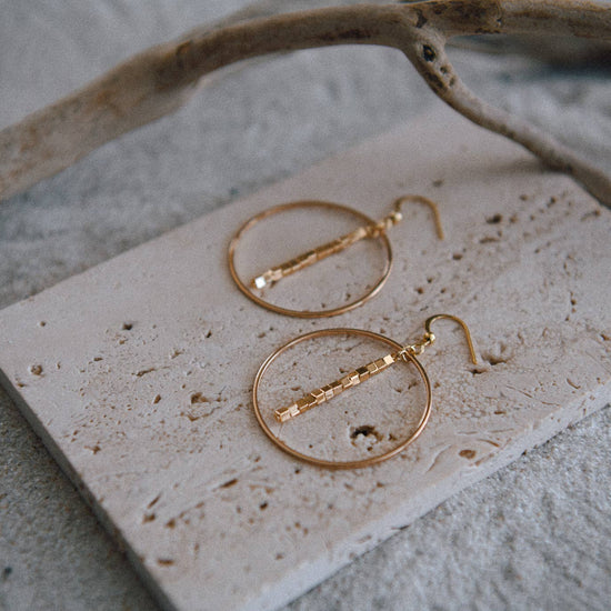 ENHANCE YOUR JEWELRY COLLECTION WITH THESE GOLD HOOP EARRINGS FEATURING A DELICATE BEADED BAR ACCENT. THEIR LIGHTWEIGHT, MINIMALIST DESIGN MAKES THEM PERFECT FOR EVERYDAY WEAR WHILE ADDING A TOUCH OF ELEGANCE TO ANY OUTFIT. CRAFTED FOR THOSE WHO LOVE BOHO-CHIC AND MODERN SIMPLICITY, THESE EARRINGS PAIR EFFORTLESSLY WITH DAINTY GOLD NECKLACES, STACKABLE RINGS, AND NATURAL GEMSTONE BRACELETS.