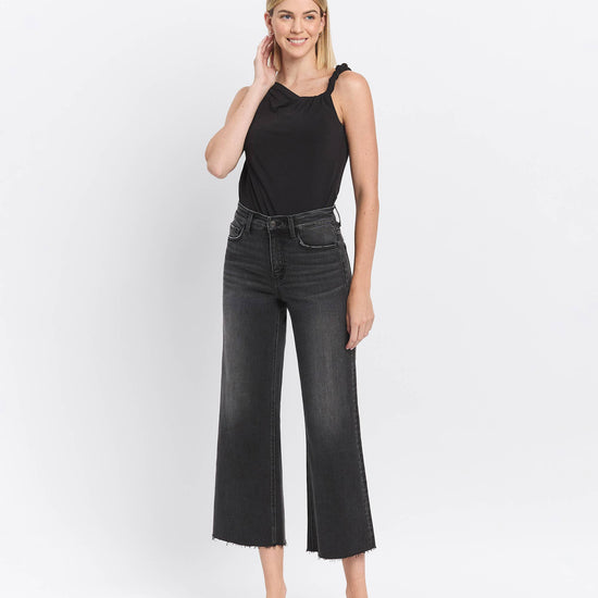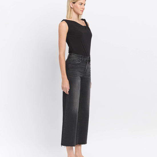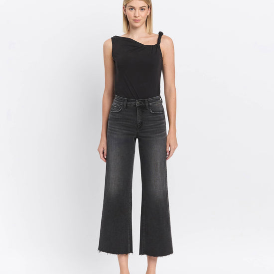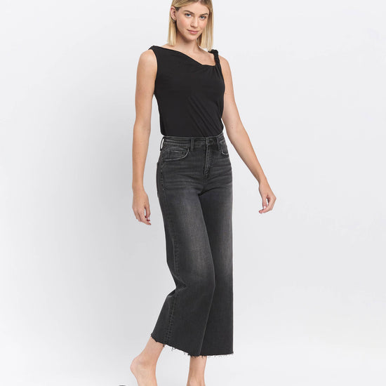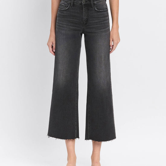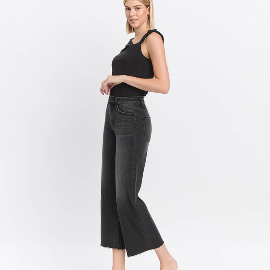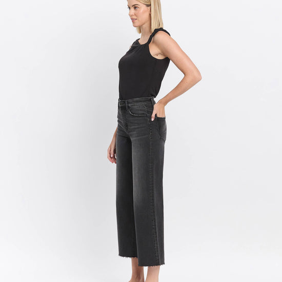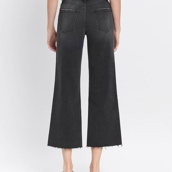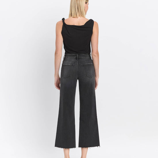 HIGH RISE RAW HEM BLACK JEANS