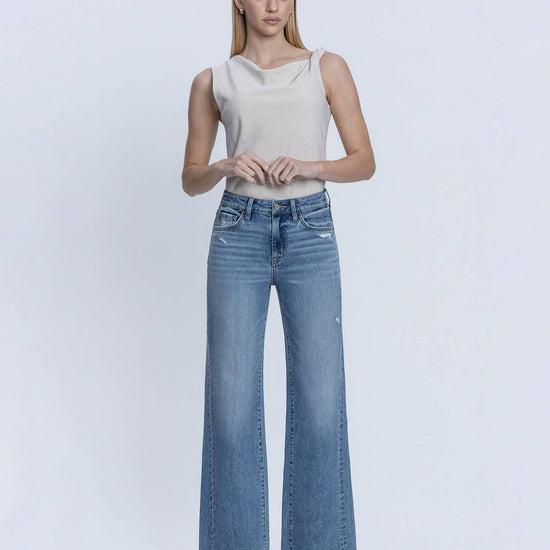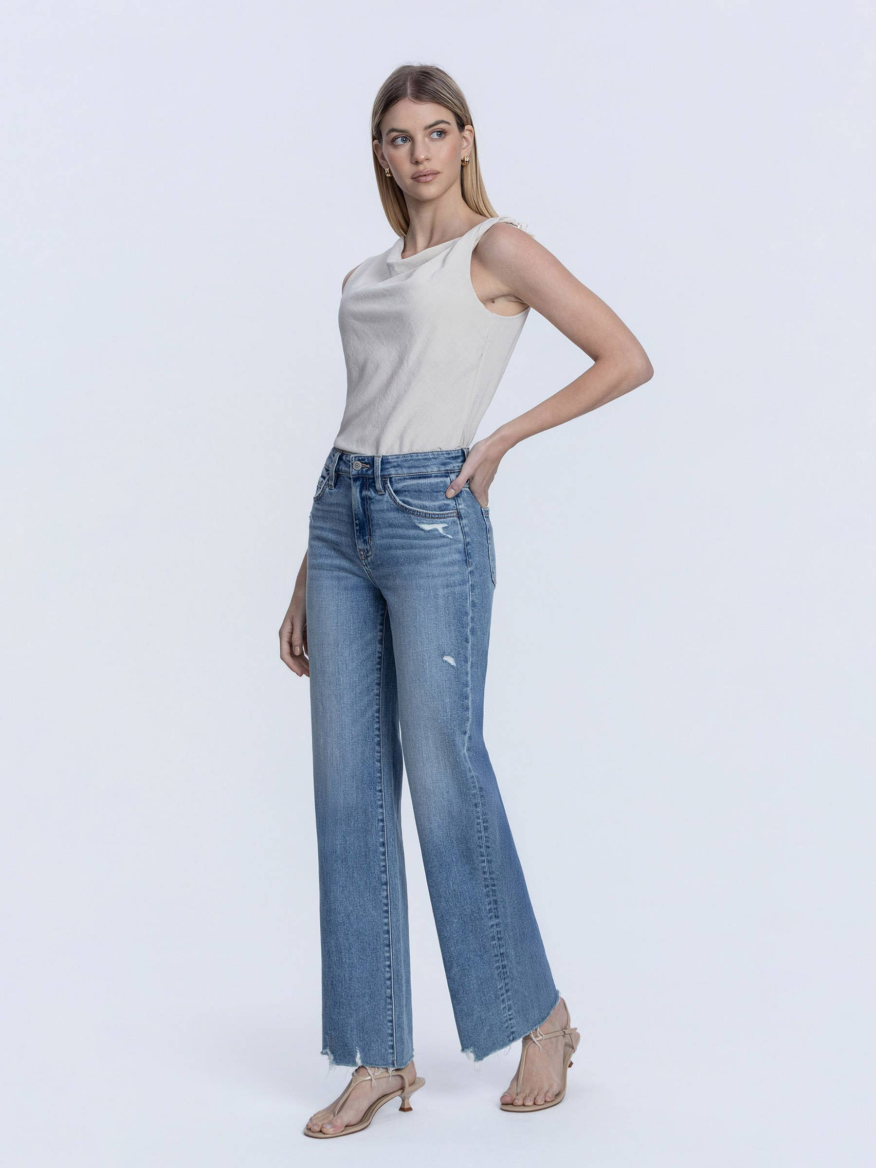 SLANT SIDE SEAM FLARE JEANS