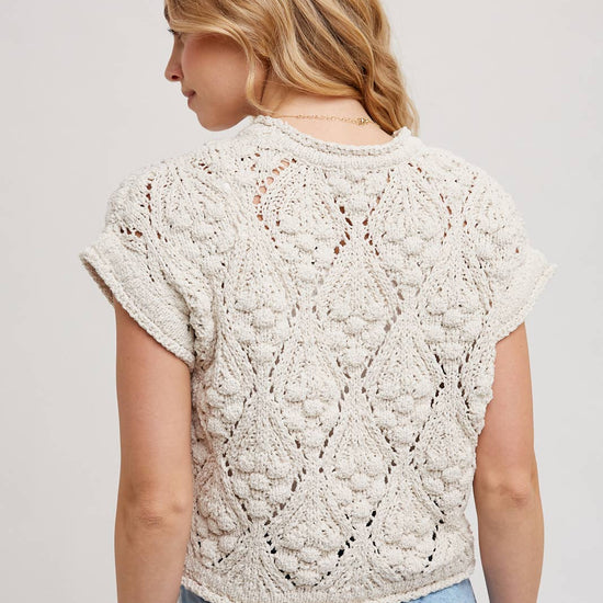 SHORT SLEEVED KNIT PULLOVER NATURAL