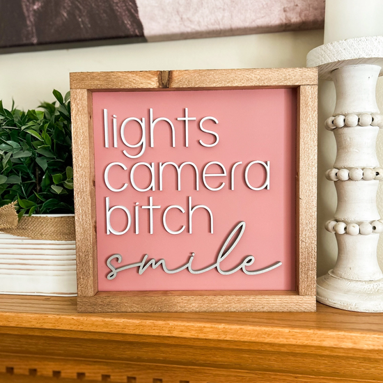 11"X11" LIGHTS CAMERA BITCH SMILE - TTPD SIGN