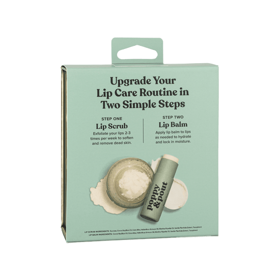 STEP UP YOUR LIP CARE ROUTINE WITH OUR LIP CARE DUO! THIS GIFT SET INCLUDES ONE MATCHING LIP BALM AND LIP SCRUB IN OUR SIGNATURE (NEWLY UPDATED!) GREEN AND GOLD, RECYCLABLE GIFT BOX.