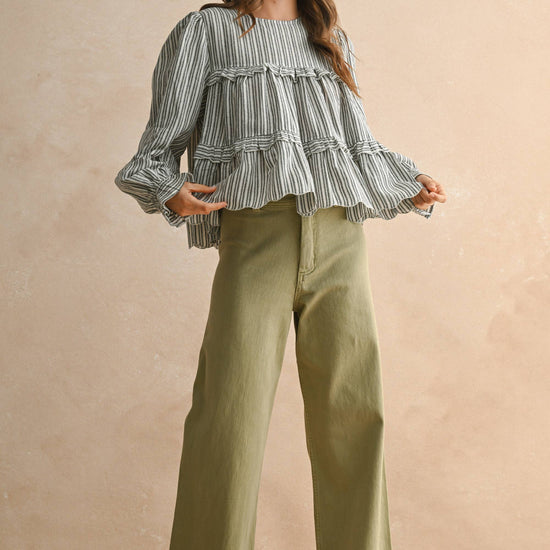 STRAIGHT WIDE LEG DENIM PANTS SIZE + FIT - MODEL IS WEARING SIZE S - MEASUREMENTS TAKEN FROM SIZE S - 5'9" / 175CM - 32-24-34