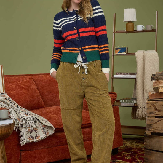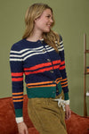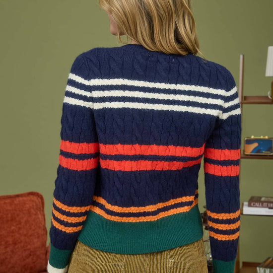 ROUND NECKLINE LONG SLEEVES BUTTON DOWN MULTICOLOR STRIPE PATTERN COLORBLOCK CABLE KNIT PATTERN KNIT SWEATER CARDIGAN SWEATER 42%ACRYLIC 30%POLYESTER 28%NYLON