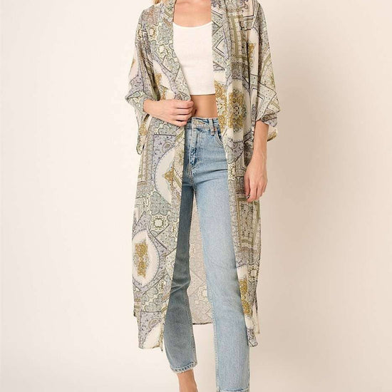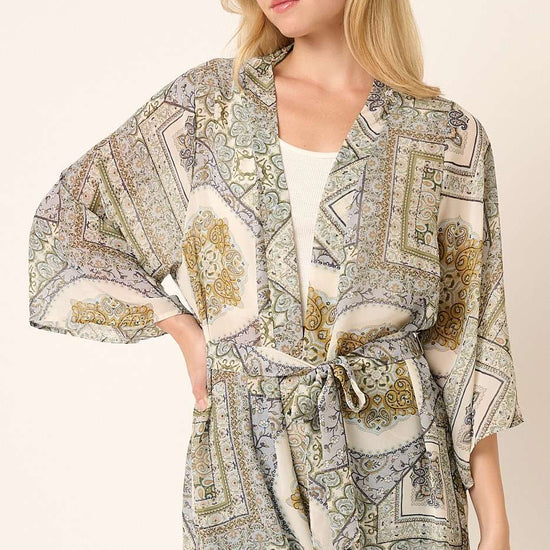 -PAISLEY PRINT ON CHIFFON WOVEN FABRIC -OPEN FRONT -THREE QUARTER LENGTH SLEEVES -SIDE SLIT -STRAIGHT HEMLINE -WAIST TIE BELT -MIDI LENGTH PLUS SIZE: M15134PL STYLED WITH: C13044 (BRALETTE), M15134 (TOP), H70554 (PANTS), H70482 (SHORTS) MODEL IS 5'8" AND WEARING SIZE SMALL # FALL, WINTER, FALL LOOKBOOK, LOOK BOOK, BACK TO SCHOOL, CARDIGAN, DUSTER, BELTED, MIDI CARDIGAN, ABSTRACT, ORNAMENTAL, PATTERN, LONG SLEEVE