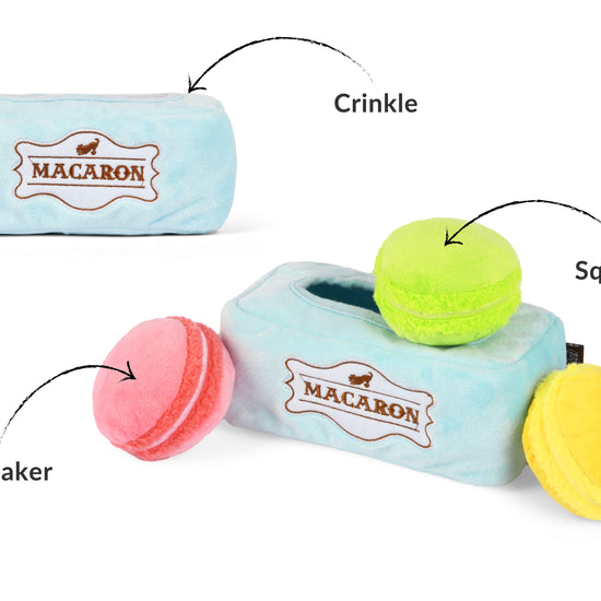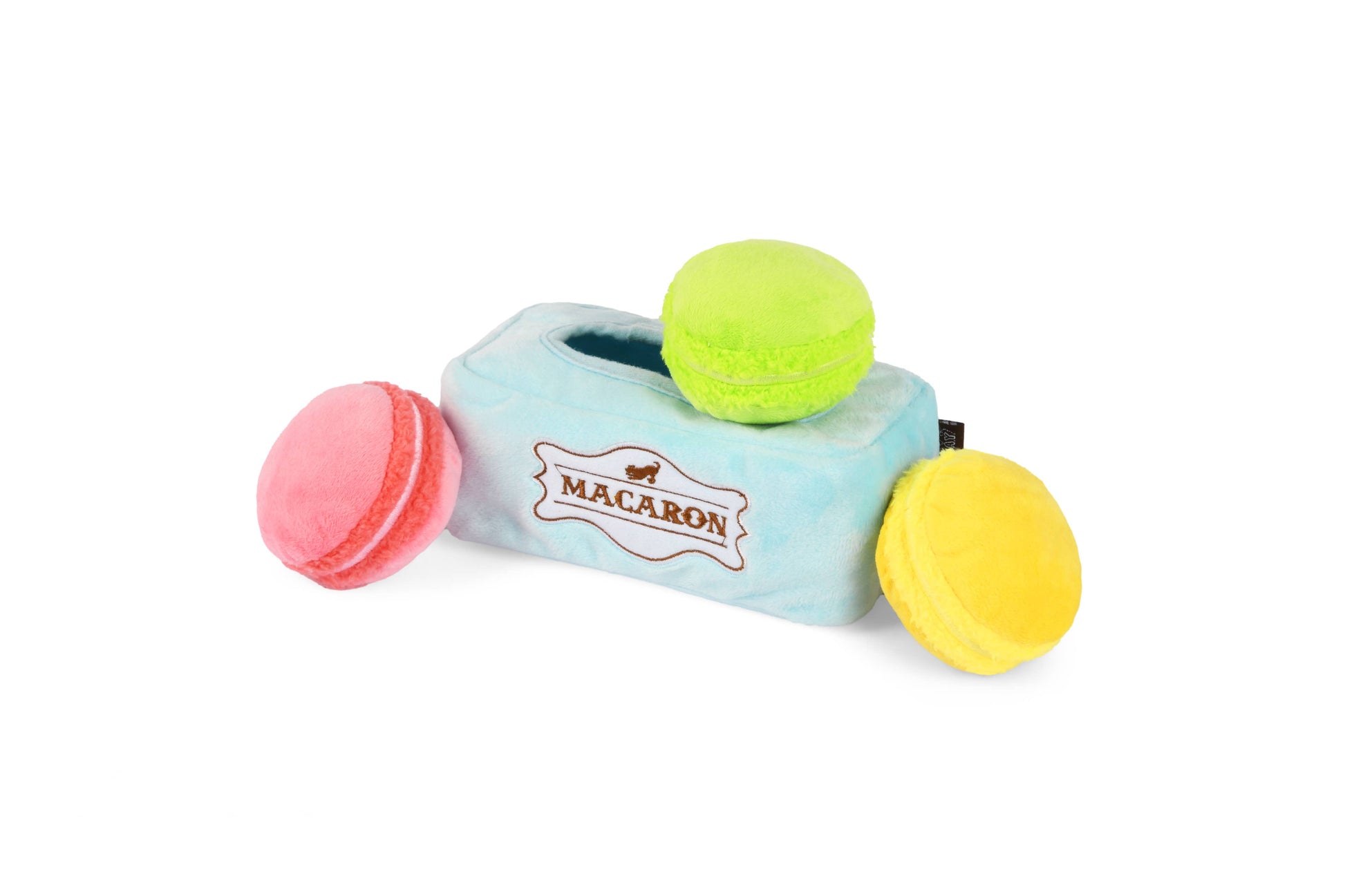 FUEL UP FOR FUN WITH P.L.A.Y.'S PUP CUP CAFÉ PLUSH TOY COLLECTION, SWEET TREAT THEMED TOYS FOR THE ENERGY-FILLED PUP IN YOUR LIFE. SHARE SOME DELECTABLE MUTT-A-RONS WITH FURIENDS FOR A FANCY GAME OF FIND-N-SEEK. 100% MACHINE WASHABLE • DURABLE DOUBLE LAYERED FABRICS • REINFORCED STITCHING FOR EXTRA DURABILITY.
