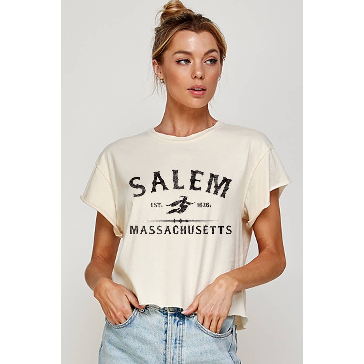 CROP DESIGNED AND PRINTED IN USA 6.1oz, HEAVYWEIGHT, 100% RING SPUN COTTON, GARMENT DYED. SMALL : CHEST20"LENGTH 19" There might be some variations and differences. CROP TOP , HAND MADE ,GRAPHIC TEE, DOUBLE LAYER NECK, VINTAGE , BOHO, SALEM MASSACHUSETTS VINTAGE GRAPHIC CROP TOP