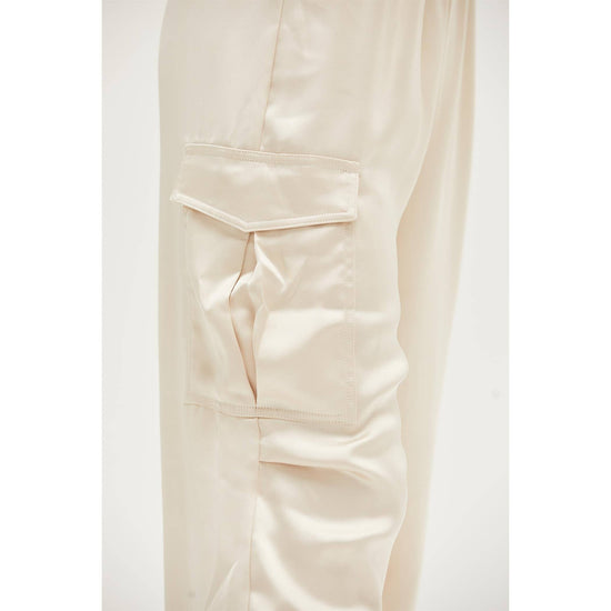 * STYLE NO.: DZ24C052_1 THESE CARGO PANTS GIVE AN EDGY ATTITUDE. THESE ARE MADE FROM LUSTROUS SATIN AND FEATURE AN ELASTICATED HIGH WAIST FOR A COMFORTABLE AND FLATTERING FIT. THE STRAIGHT-CUT LEGS ARE ACCENTED WITH SIDE FLAP POCKETS AND FINISHED WITH ADJUSTABLE HEMS. 100% POLYESTER MODEL IS 5' 9" TALL, 32" CHEST, 23" WAIST AND 35" HIPS AND WEARING A SIZE SMALL IMPORTED. DESIGNED IN THE USA