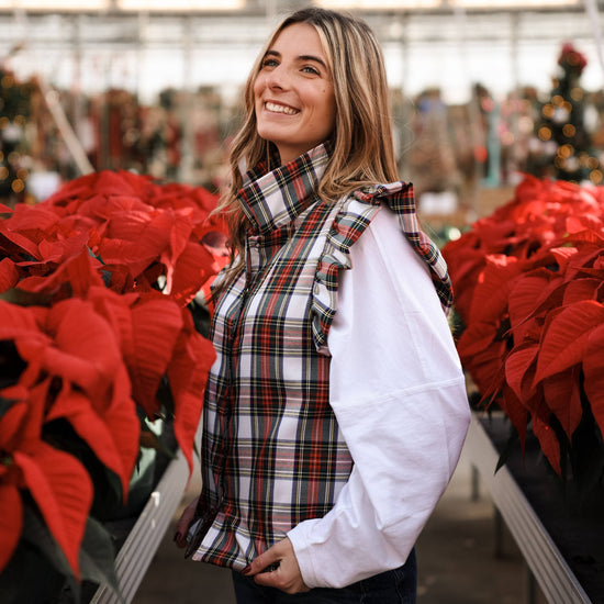 BECOME THE STYLE ICON OF THE SEASON WITH THE SCOTTIE PLAID VEST, A PLAYFUL LAYERING PIECE THAT BLENDS BOLD DESIGN WITH EVERYDAY FUNCTION. FEATURING VIBRANT PLAID PATTERNS, SWEET RUFFLE DETAILING, AND SIDE-SLIT POCKETS FOR YOUR ESSENTIALS, THIS VEST IS PERFECT FOR THOSE WHO LOVE FASHION WITH A WINK. WHETHER YOU'RE HEADING TO BRUNCH, BROWSING A FALL MARKET, OR JUST WANT TO ADD PERSONALITY TO YOUR WARDROBE, THE SCOTTIE VEST DELIVERS STANDOUT STYLE WITHOUT TAKING ITSELF TOO SERIOUSLY. DETAILS & CARE: * SMALL (4-6), MEDIUM (8-10), LARGE (12-14), EXTRA LARGE (16-18) * 100% POLYESTER * PLAID * IMPORTED