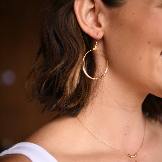 THESE HANDCRAFTED BOHO HOOP EARRINGS ARE A PERFECT BLEND OF ELEGANCE AND SIMPLICITY. FEATURING A LIGHTWEIGHT DESIGN, THEY EXUDE A NATURAL AND EARTHY CHARM THAT COMPLEMENTS A VARIETY OF STYLES. WHETHER YOU'RE DRESSING UP FOR A SPECIAL OCCASION OR LOOKING FOR A SUBTLE EVERYDAY ACCESSORY, THESE EARRINGS PROVIDE THE IDEAL BALANCE OF SOPHISTICATION AND VERSATILITY.