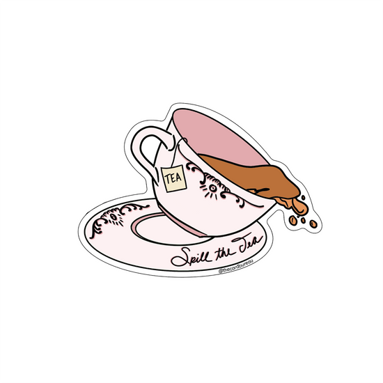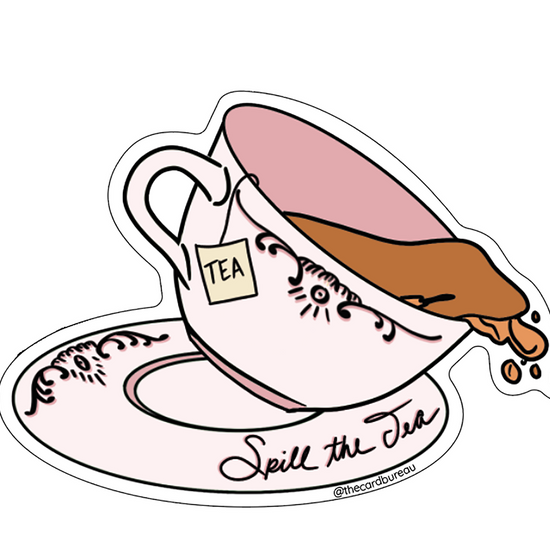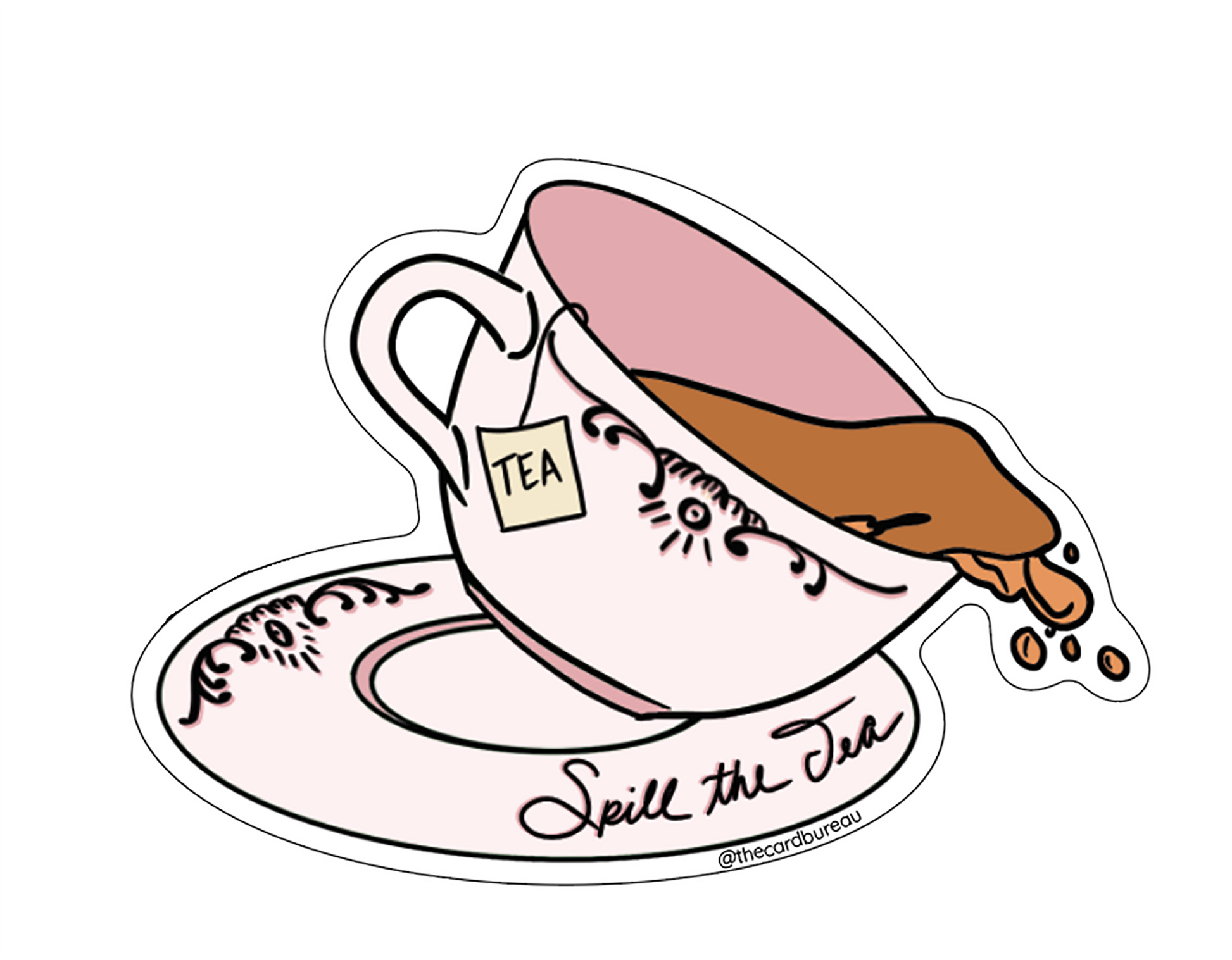 WHETHER YOU'RE THE TEA SIPPER OR TEA SPILLER, WE ALL ENJOY A LITTLE SPILLED TEA. THIS VINYL STICKER IS IDEAL FOR LAPTOPS, CELLS PHONES, NOTEBOOKS, OR WHEREVER ELSE YOU WANT TO SHOW IT OFF! HIGH QUALITY 3"X2" VINYL MATTE STICKER. EASY PEEL OFF.