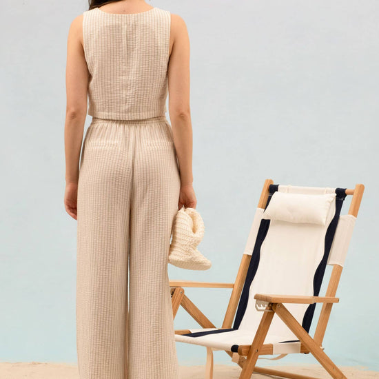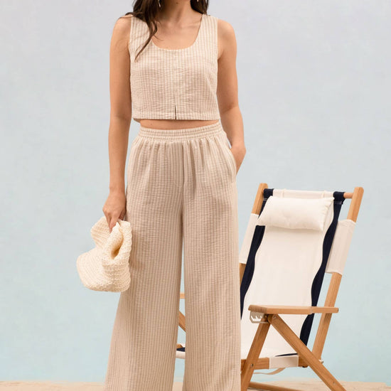 STRIPE SLEEVELESS CROP TOP AND LOUNGE BOTTOMS SET