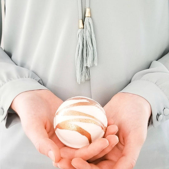 WITH NOTES OF FRESH COCONUT CREAM, ORCHID, AND VANILLA, THIS SCENT HAS BEEN ACCURATELY DESCRIBED AS A LITTLE VACATION. IT CONTAINS ORGANIC COCONUT MILK AND IS HAND-PAINTED WITH SHIMMERING MINERAL MICA POWDER - A LUXURIOUS SYMPHONY OF AROMA AND COLOR. - HAND-DECORATED – WITH OUR SIGNATURE BRUSHSTROKE, DRIZZLE, AND SPLATTER DESIGNS. - MESS-FREE - WE BELIEVE THE FUN SHOULD LAST EVEN AFTER YOU FINISH YOUR BATH. THAT IS WHY WE MAKE SURE OUR BATH BOMBS ONLY REQUIRE A QUICK RINSE AFTER USE. THE COLORS WASH OFF EASILY AND WON'T STAIN YOUR TUB! - ULTRA-MOISTURIZING– WE DEVELOPED OUR SIGNATURE FIVE-OIL BLEND FOR OPTIMAL SOOTHING AND RELAXING. - EACH BATH BOMB CONTAINS A GENEROUS AMOUNT OF NATURAL OILS, INCLUDING COCONUT, SHEA BUTTER, SWEET ALMOND, AVOCADO, AND GRAPESEED OILS.