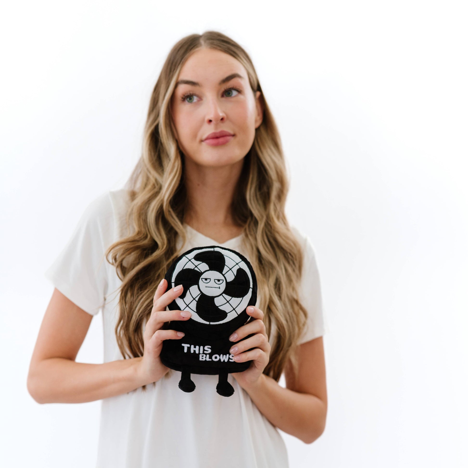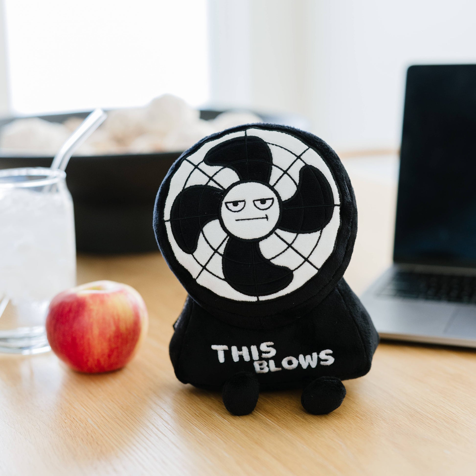 THIS PLUSHIE IS NOT A FAN OF€¦WELL€¦ANYTHING. HE KNOWS THINGS WON€™T ALWAYS BE EASY-BREEZY. WHEN SH*T HITS THE FAN, HE€™S THE FIRST TO THROW UP HIS BLADES AND SAY, €ŒWELL, THIS BLOWS!€ HIS ANNOYED EXPRESSION MAKES HIM A FAN-TASTIC GIFT FOR ANYONE WHO GETS EASILY IRRITATED. THIS PLUSH IS IDEAL FOR CHILDREN, COLLECTORS, OR ANYONE WHO LOVES COZY AND FUN DéCOR. A GREAT ADDITION TO GIFT SHOPS AND TOY STORES!