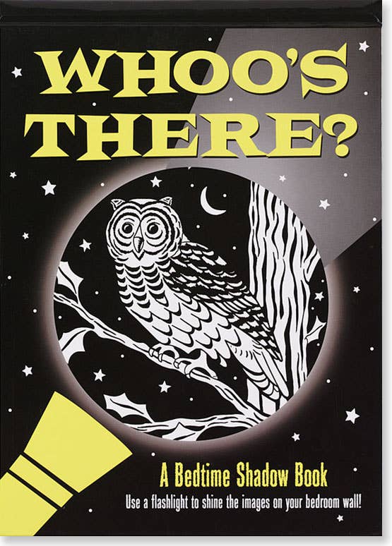 SOOTHE LITTLE ONES' NIGHTTIME FEARS WITH THIS UNIQUE BEDTIME BOOK! WHOO'S THERE? OFFERS GENTLE RHYMES ABOUT SIX NIGHTTIME CREATURES -- AN OWL, A RACCOON, FIREFLIES, AND MORE. SHINE THE BEAM OF A LIGHT (NOT INCLUDED) THROUGH THE PAGE ''WINDOWS'' TO CAST PICTURES ON THE WALL AS YOU READ WITH YOUR CHILD. IT'S A FUN AND COMFORTING WAY TO END THE DAY AND EXPERIENCE A BOOK TOGETHER. PLEASE NOTE: FOR BEST RESULTS, USE THIS SHADOW BOOK WITH A SMALL, SINGLE-BULB LIGHT SOURCE. A SMALL PEN LIGHT, OTHER SINGLE-LED LIGHT, OR THE LIGHT ON THE BACK OF A SMARTPHONE IS RECOMMENDED. MULTI-LED FLASHLIGHTS ARE NOT RECOMMENDED. IF YOU HAVE TROUBLE GETTING A CLEAR IMAGE, TRY MOVING YOUR LIGHT CLOSER TO OR FARTHER AWAY FROM THE PAGE. AGES 3 TO 9. STURDY COVERED WIRE-O HARDCOVER BINDING.
