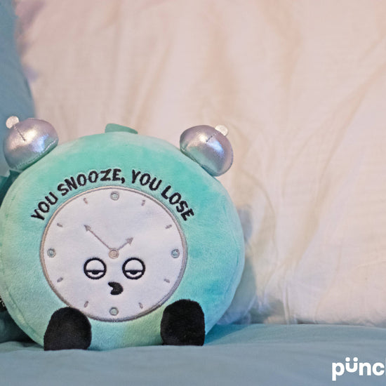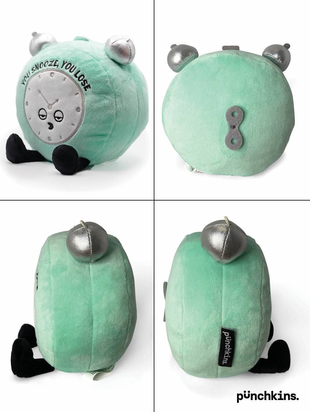 YOU SNOOZE, YOU LOSE PREMIUM QUALITY: THIS PLUSHIE IS STUFFED WITH PERSONALITY! EACH PUNCHKIN IS MADE OF SUPER SOFT FABRIC WITH DETAILED EMBROIDERED EXPRESSIONS AND PUNCHLINES. THE WEIGHTED BASE KEEPS IT SITTING UPRIGHT SO EVERYONE CAN EASILY SEE THEM ON DISPLAY AT HOME, WORK, OR ANYWHERE YOU WANT TO SHOW OFF SOME PERSONALITY! PERFECT GIFT: MAYBE THIS ALARM PLUSHIE WILL FINALLY CONVINCE YOU TO GET OUT OF BED AFTER THE FIFTH ALARM. UNLIKELY, BUT WITH IT’S EMBROIDERED DETAILS, METALLIC ACCENTS, AND WEIGHTED BASE IT’LL AT LEAST BE A CUTE IDEA. SHELF-SIZED: PUNCHKINS ARE PERFECTLY SIZED TO SHOWCASE ON A BOOKSHELF, DESK, OR ANY OTHER FLAT SURFACE. THEY ALSO MAKE FOR GREAT SOCIAL MEDIA POSTS #PUNCHKINS PUNCHKINS ARE LOL FUN. THEY’RE GIFTABLE, SALTY AND SOMETIMES SWEET PLUSH WAITING TO BE GIVEN TO YOUR FAVORITE PEOPLE. PUNCHKINS ARE THE PERFECT GAG GIFT FOR BIRTHDAYS, WHITE ELEPHANT PARTIES, OR ANY THINKING-OF-YOU OCCASION. SIZE: 4" X 6" X 6"