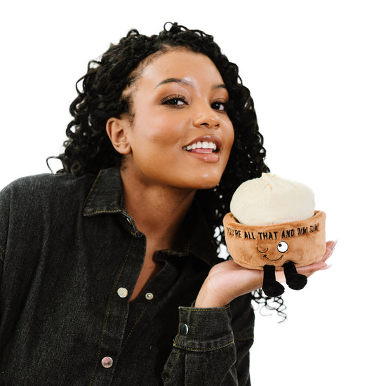 YOU'RE ALL THAT & DIM SUM PERFECT GIFT: NO DOUBT A BAO IT, THIS LITTLE DUMPLING IS AN INSTANT CONFIDENCE BOOSTER! GIVE IT TO THAT SPECIAL SOMEONE AND THEY MIGHT JUST CATCH FILLINGS FOR YOU THANKS TO THE SOFT FABRIC AND DANGLING LEGS. HIGH-QUALITY MATERIALS: THIS PLUSHIE HAS PERSONALITY! EACH PUNCHKIN IS MADE OF SUPER SOFT FABRIC WITH AN EMBROIDERED EXPRESSION AND PUNCHLINE. THE BEAD-FILLED BASE KEEPS IT UPRIGHT AND READY TO DISPLAY AT HOME, WORK, OR ANYWHERE ELSE! SHELF-SIZED: AT 6 INCHES TALL, THIS PUNCHKIN IS PERFECTLY SIZED FOR DISPLAY ON A BOOKSHELF, DESK, OR ANY OTHER FLAT SURFACE. PUNCHKINS ARE LOL FUN, SALTY (AND SOMETIMES SWEET) PLUSH GAG GIFT. THEY'RE THE PERFECT ADULT STUFFED ANIMAL TO GIVE FOR BIRTHDAYS, WHITE ELEPHANT, VALENTINE'S DAY, OR ANY THINKING-OF-YOU OCCASION. SIZE: 6" X 5" X 6" THIS PLUSH IS IDEAL FOR CHILDREN, COLLECTORS, OR ANYONE WHO LOVES COZY AND FUN DECOR. A GREAT ADDITION TO GIFT SHOPS AND TOY STORES!